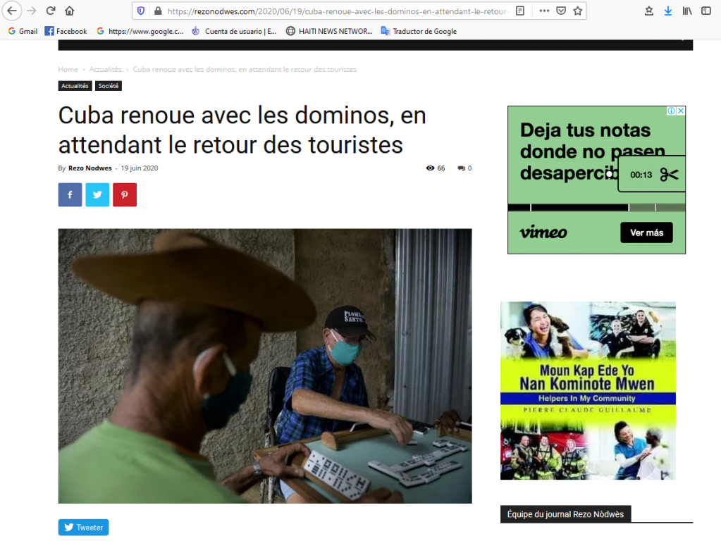 Vendredi 19 juin 2020 ((rezonodwes.com))– Les amis s’attablent autour d’un jeu de dominos, les commerces rouvrent et le transport public redémarre: après presque trois mois de confinement pour cause de pandémie, Cuba retrouve un début de vie normale, avant le retour des touristes étrangers.