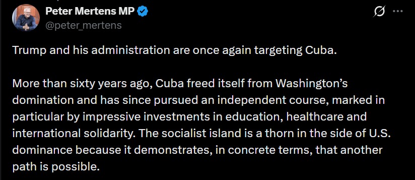Il est temps que la Belgique et l'Union européenne cessent de suivre l'impérialisme américain. Solidarité avec le peuple cubain et avec tous ceux qui résistent.