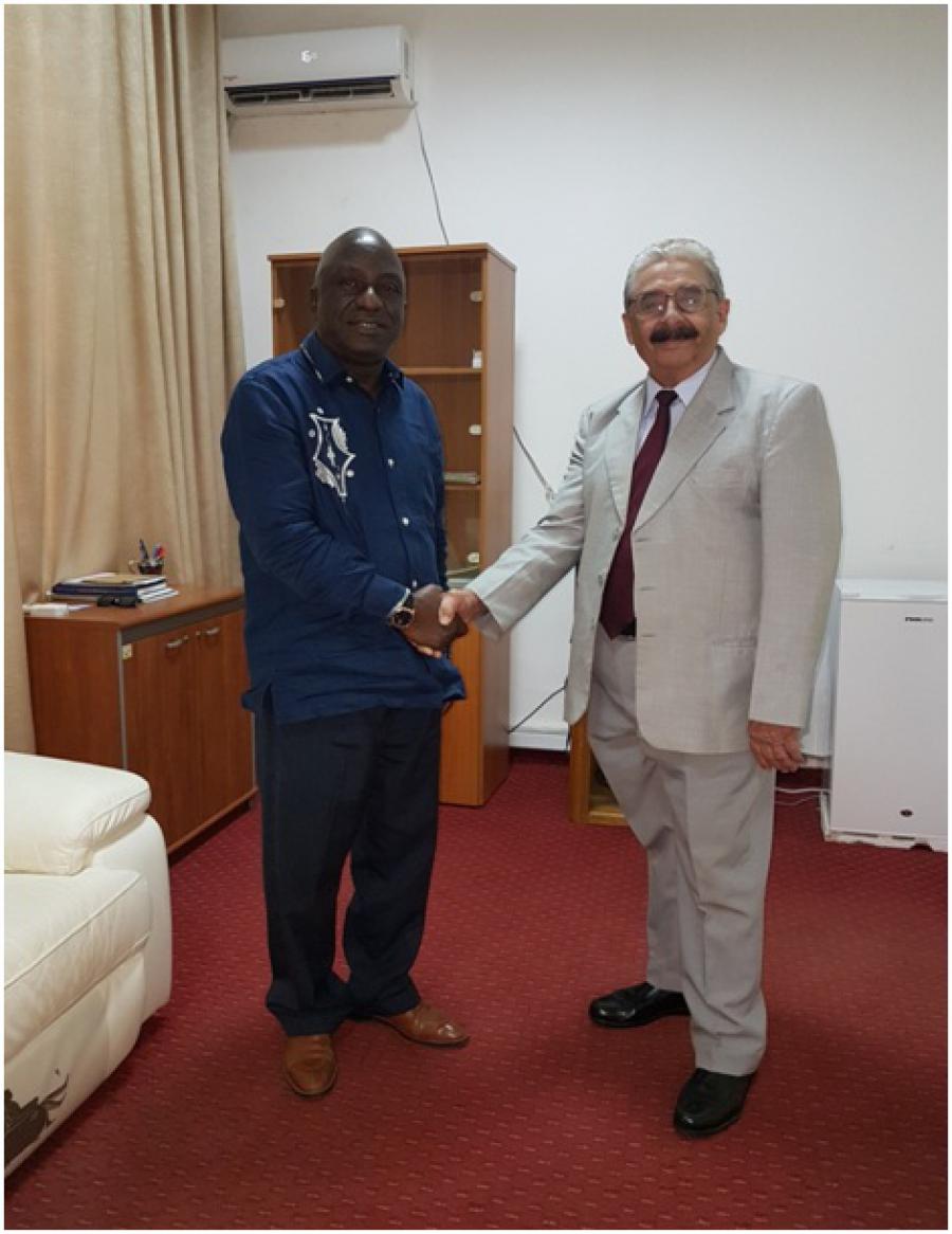 L'Ambassadeur de la République de Cuba en Guinée, Roberto Rodríguez Peña, a rendu une visite de courtoisie au nouveau Directeur Général du Protocole du Ministère des Affaires étrangères et des gaufriers à l'étranger, M. Framoi Mara. Au cours de l'entretien, un échange d'informations positif a eu lieu sur les relations d'amitié et de coopération entre les deux pays.
