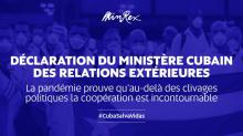 Kuba teilte der US-Botschaft in Havanna über sein Außenministerium (MINREX) in einer diplomatischen Note mit, dass es die Behauptung widerlegt, welche die Zeitschrift Newsweek in einem Artikel vom 3. April 2020 einem „hohen Beamten“ des US-Verteidigungsministeriums zuschreibt, wonach „die US-Geheimdienste Beweise dafür haben“, dass zwischen Venezuela und Kuba Drogenlieferungen stattgefunden haben.
