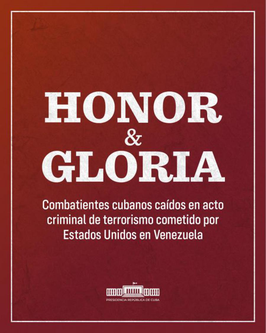 2026年1月3日未明、米国政府が姉妹国であるベネズエラ・ボリーバル共和国に対して行った犯罪的な攻撃の結果、ベネズエラの同機関からの要請を受けて、革命軍および内務省に代わって任務を遂行していた32人のキューバ人が戦闘行動で命を落とした。