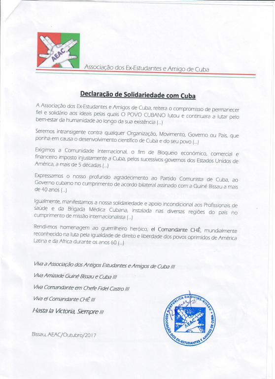DECLARACIÓN DE LA ASOCIACIÓN DE EX GRADUADOS Y AMIGOS DE CUBA EN GUINEA BISSAU.