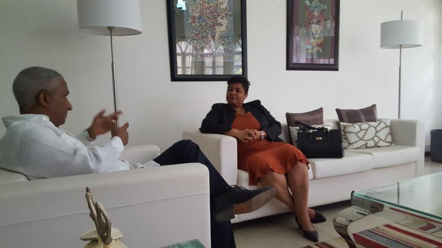 O Embaixador de Cuba em Cabo Verde recebeu a magnífica reitora da Universidade Pública de Cabo Verde, Judite Medina do Nascimento, durante o encontro em que o Embaixador analisou as possibilidades existentes de retomar a cooperação bilateral com diferentes centros universitários cubanos.