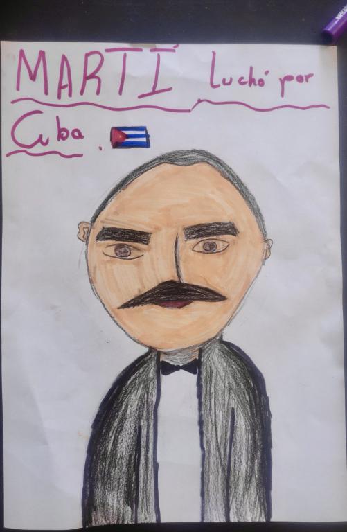 As meninas da missão desenharam Martí e estes desenhos foram expostos: