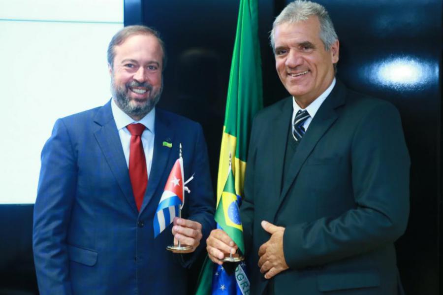 Brasília, 30 de maio de 2023. - O Ministro de Minas e Energia, S.E. Alexandre Silveira, recebeu o Embaixador Adolfo Curbelo Castellanos na sede do Ministério Federal.