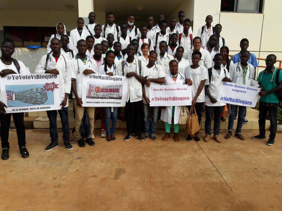 29 de setembro.- Mitin contra o bloqueio dos estudantes e Professores de Medicina do Hospital Militar Principal de Bissau, fizeram-se referências às declarações na ONU dos Chefes de Estado e de Governos na contramão do Bloqueio a Cuba que tanto dano tem ocasionado ao povo cubano.
