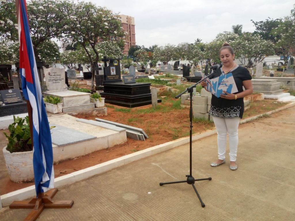 Uma representação de colaboradores e membros da missão diplomática de Havana em Luanda visitou o Cemitério das Cruces, no centro da cidade, no intuito de colocar una coroa de flores e manter um minuto de silencio perante o tumulo que conservou no seu começo os restos mortais de Díaz Argüelles.