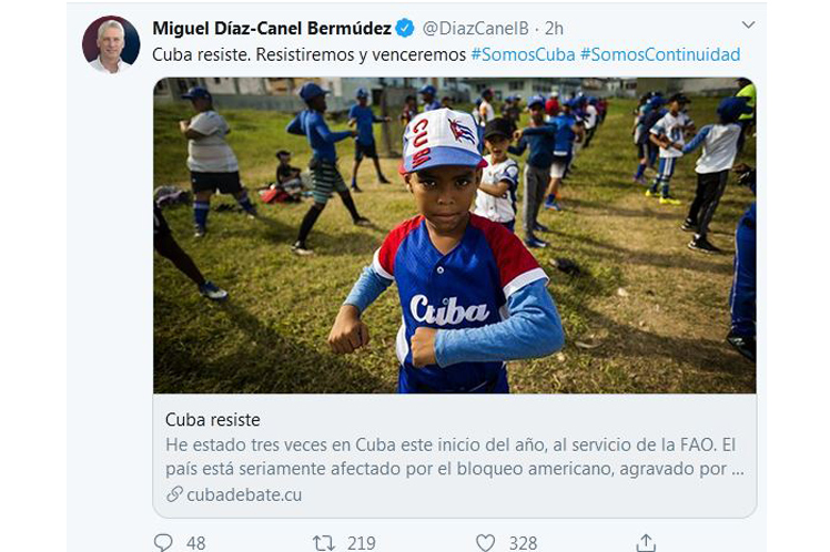 Cuba resiste. Vamos resistir e vencer. Nós somos Cuba Somos continuidade, escreveu o presidente em sua conta no Twitter.