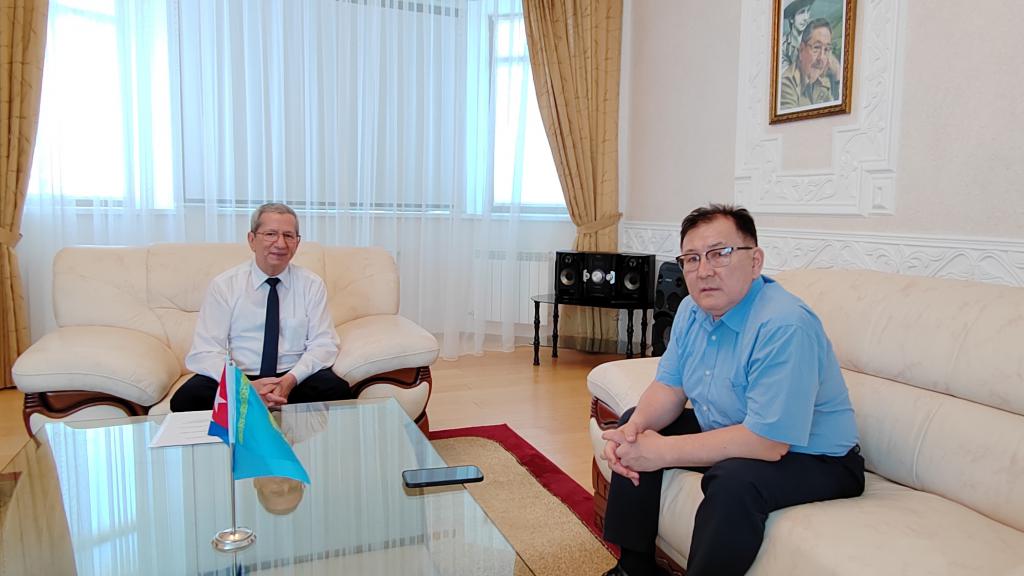 Астана, 19 июня 2025 года. Посол Кубы Оскар Сантана Леон принял профессора и академика Сеилова Шахмарана, декана факультета информационных технологий ЕНУ РК им. Л.Н. Гумилева, одного из важнейших вузов страны, который также является президентом Казахской академии инфокоммуникаций.