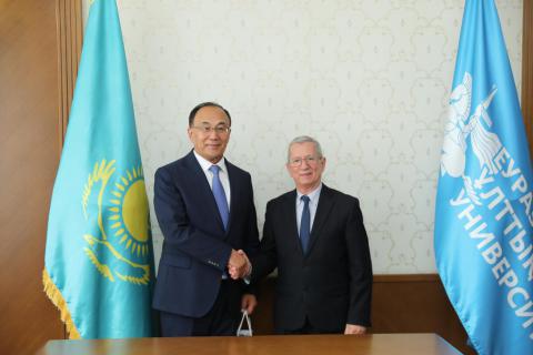 Во встрече также приняли участие Думан Айтмагамбетов, член Совета, проректор по стратегическому развитию и интернационализации; Сеилов Шахмаран, декан факультета информационных технологий; Анастасия Кармелюк, директор Департамента международного сотрудничества; и Жарас Берденов, декан факультета естественных наук.