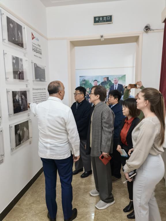 在参观代表着“古中永恒友谊高光时刻”的使馆历史走廊期间,两位来宾均表达了对古巴的钦佩之情,并强调两国兄弟般的友谊紧密联结着两国人民且今年的6月3日将迎来首批旅古华人抵达古巴175周年纪念。在参观古巴革命领袖对华关系的展厅时,两位来宾对菲德尔·卡斯特罗·鲁斯总司令表达了敬重之情。
