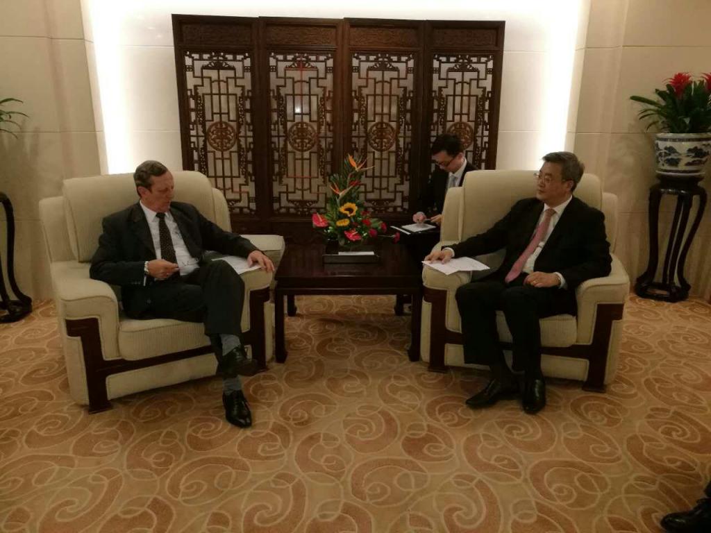 Jun132017 北京,2017年6月13日 – 中国外交部拉美司司长祝青桥在京会见了古巴驻华大使米格尔•安赫尔•拉米雷斯•拉莫斯。 祝青桥司长在会见期间肯定了两国间的传统友谊,并重申中方将在反对美国封锁的斗争以及古巴经济模式更新进程等关乎古巴根本利益的问题上提供帮助。 大使方面回顾了双方在近一年来的主要出访成果,并表示访问显示了中古两国间高水平的关系,同时也有助于进一步巩固两国在各个领域的双边关系的发展。 会谈期间,双方一致肯定了使馆与拉美司举行会议的重要性,此举有助于双方围绕双边议程中的重要议题展开交流。 Categoría: Relaciones Bilaterales
