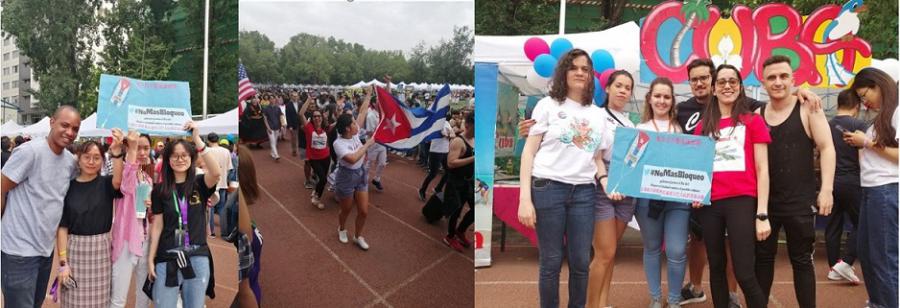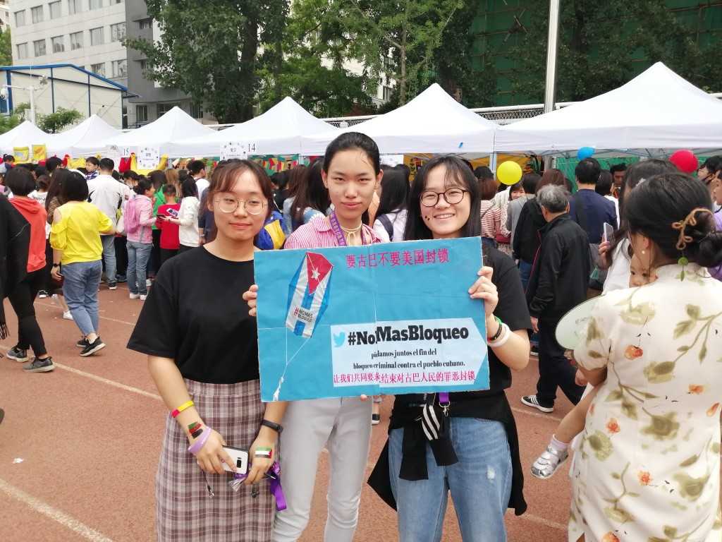 古巴留学生们在北京语言大学世界文化节上发声反对封锁