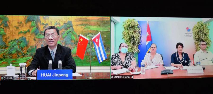 2022年7月6日,北京- 昨日,古巴教育部部长埃娜·艾尔莎·委拉斯凯兹·科比埃亚女士同中国教育部部长怀进鹏进行了卓有成效的线上会晤,会晤双方对两国教育合作的前景进行了探讨。