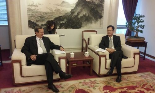 10月25日,于北京。古巴大使米格尔·安赫尔·拉米雷斯·拉莫斯在中国对外文化集团(英文缩写为CAEG)受到了该集团新任董事长李金生的接待,二者进行了友好高产的对话。