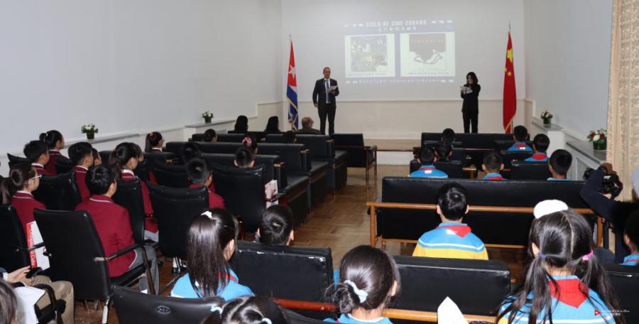 中古友谊小学和北京市第一零九中学的师生出席了首次古巴电影展映季